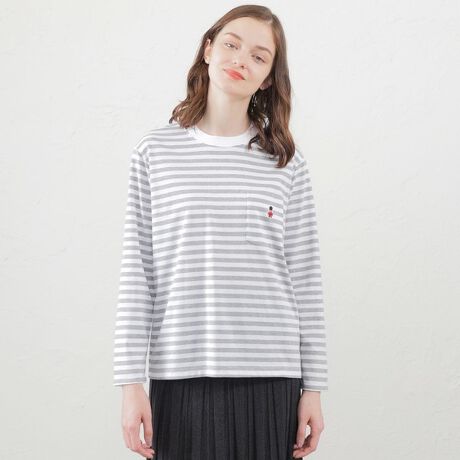 ベーシックな長袖のボーダーカットソー。程よくゆとり感があるシルエットで、インナーとしても1枚でも着回しのいいアイテムです。