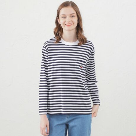 ベーシックな長袖のボーダーカットソー。程よくゆとり感があるシルエットで、インナーとしても1枚でも着回しのいいアイテムです。