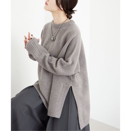 ウールカシミヤ脇スリットクルーネックプルオーバー
