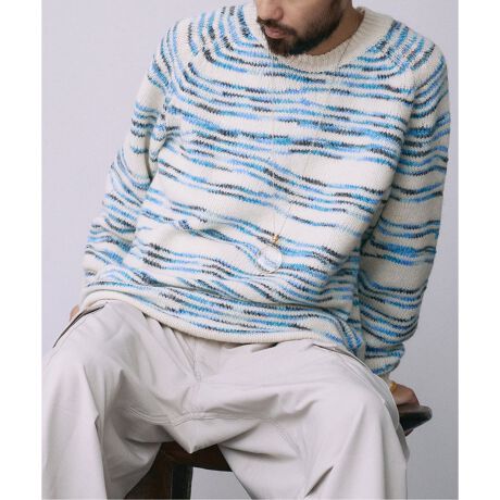 スペースダイ ランダムボーダー クルーネックニット