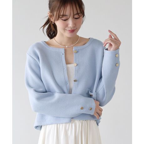 《新色追加》金ボタンノーカラーニットジャケット