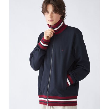 リブ部分にグローバルストライプ柄をあしらったジップジャケット。カジュアルなデザインをスッキリしたシルエットで品よく仕上げています。左胸にフラッグロゴ、両サイドにはポケットつき。さらっとラフに羽織るのはもちろん、ジップを最上部まで閉めてスタンドカラーで着こなしてもスタイリッシュに決まります。