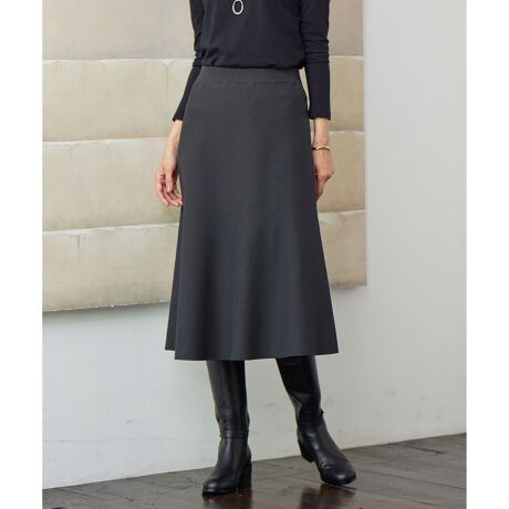 動きやすく、ストレスフリーな履き心地のニットスカート。立体感のあるフレアーが出るよう編み方にこだわり、どこから見ても美しいシルエットです。ニットならではの軽い着心地と、腰まわりのすっきり見えを実現するゴム仕様が嬉しいポイント。いつものコーディネートにプラスするだけで秋冬らしい表情に。同素材のニットとはもちろん、お手持ちのトップスとも今年らしいスタイリングが楽しめます。