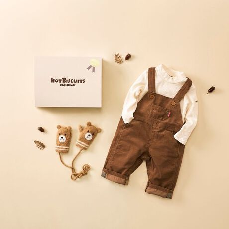 コーデュロイオーバーオール&Tシャツ&ミトンセット【BOX付き】