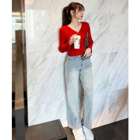 トレンドのワイドストレートタイプで、程よいゆとりがキレイなシルエットを生み出します。