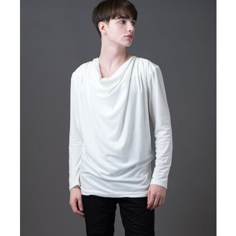 手触りの良いベロアテレコ素材で、着用感の良いドレープネックロングTシャツに仕上げました。