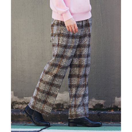 イタリアンスライバーウールニット パイプドステム パンツ