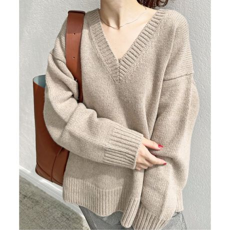 ざっくりローゲージな編地が魅力のVネックプルオーバー。