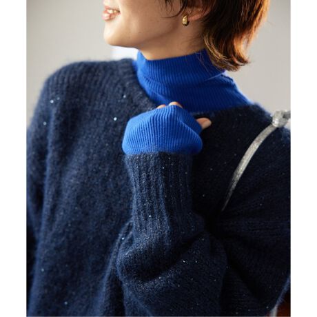 モヘヤの糸にスパンコール糸を編みこんだプルオーバー。