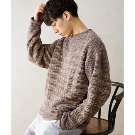 モールワッフルボーダー クルーネックニット