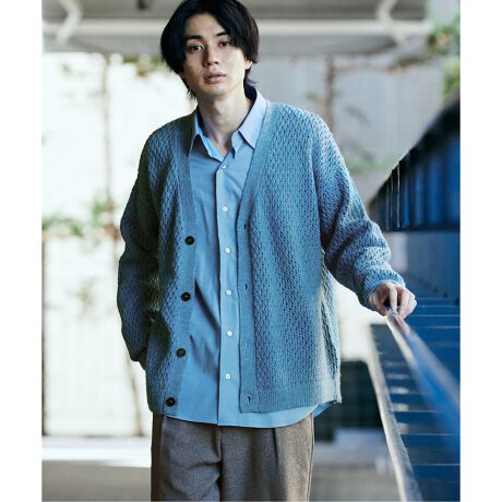 編み目を透かすことでトレンド感溢れるニットカーディガンに仕上がっています。