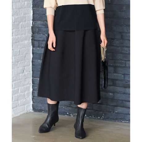 立体的なシルエットが美しいニットスカート■デザインホールガーメントでしか表現できない美しいフォルムが特徴のニットスカートです。同素材のトップスと合わせることで、上品で新鮮なセットアップスタイルが叶います。ブラウスやカットソーなど軽いアイテムと合わせてもスタイリングに華やかさをプラスしてくれます。ボリュームはありつつも、素材が軽く肌離れが良いので暑い時期から取り入れやすいアイテムです。■素材原料生産時の特殊加工方法により、ボリューム感とストレッチ性を高めたポリエステル糸です。染色時にソフト加工を施し、柔軟性にも優れています。通常のポリエステル糸に比べ、軽量で立体的なデザインを生み出すことができる素材です。