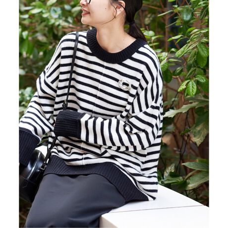 今年は新たにボーダーを追加。同素材で展開しているニットフードとセットで着用すると、フード付きのプルオーバーのように着こなせます。
