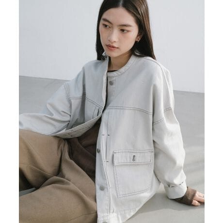 オーバーサイズ ノーカラー デニム ツイル ジャケット
