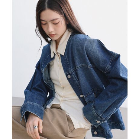 オーバーサイズ ノーカラー デニム ツイル ジャケット