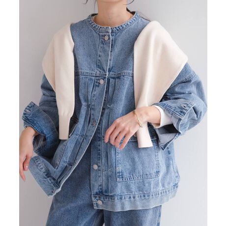 オーバーサイズ ノーカラー デニム ツイル ジャケット