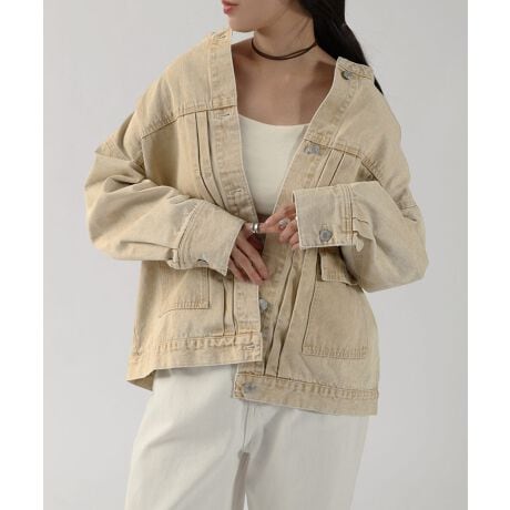オーバーサイズ ノーカラー デニム ツイル ジャケット