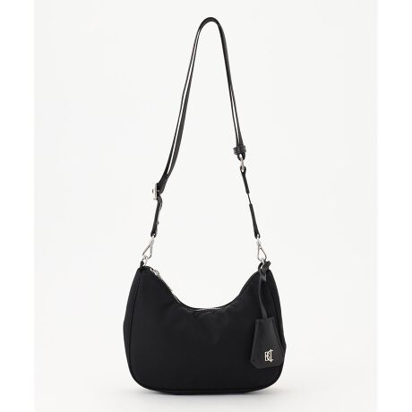 ■デザイントレンドのムーン型にチェーンハンドルがポイントになったデザイン。持ち手を付け替えて、ショルダーバッグとしてもチェーンバックとしてもお使いいただける2WAY仕様です。本体はポリエステル素材で軽く、床革を使用した付属のキーチャームにはICBオリジナルロゴが施されています。