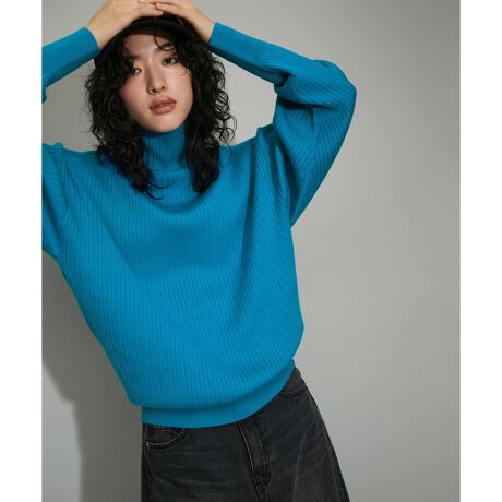 【《定番人気》オンオフ使えて着回せる。袖を通すだけでどんな方でもしっくりと決まる、タートルネックのワイドリブプルオーバー】