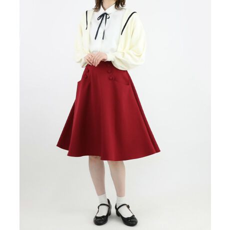 レトロなダブル釦とスカラップの組み合わせがキャッチーなフレアースカート。