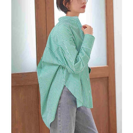 オーバーサイズとニュアンスのある背中タックがこなれ感のある印象に。
