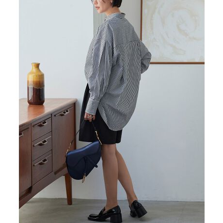 オーバーサイズとニュアンスのある背中タックがこなれ感のある印象に。