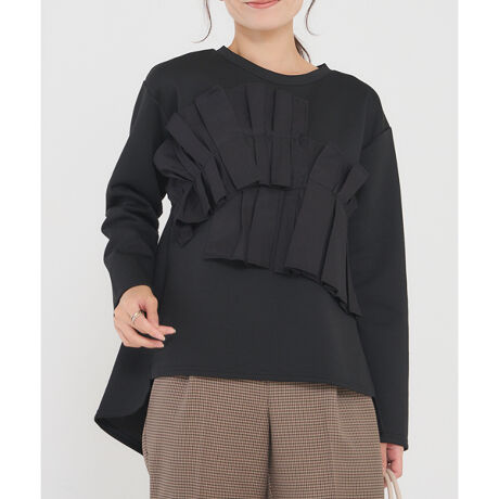 大きなフリルを前後にあしらったプルオーバー。