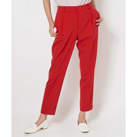 ベーシックなタック入りのスリムテーパードパンツ。ちょうど良い深さの股上の設定やしゃがんだ時の後ろのウエスト部分の安心感などパターンにこだわった1本。後ろウエストはゴム入りで楽ちんながらも美しいシルエットも魅力のひとつ。センタープレス入りで脚をスッキリきれいに見せてくれるのも高ポイント。同素材のテーラードジャケット[PZJJU25460]やロングジレ[PZJJS15390]とのセットアップできれいめなお仕事スタイル、トレンドのロゴTでカジュアルに着こなすのもおすすめです。