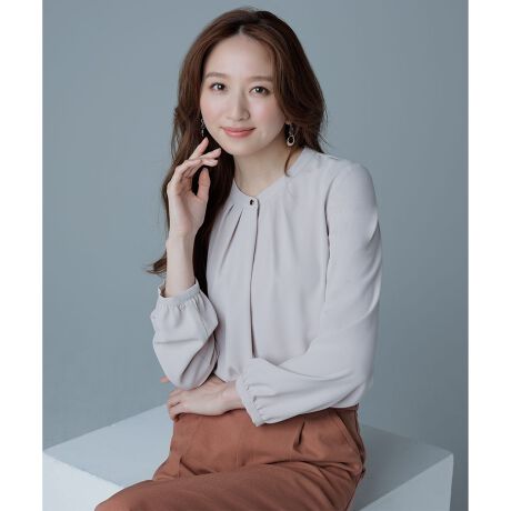 スタンドカラーできちんと見え!上品なとろみ素材の長袖ブラウス