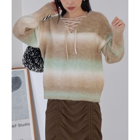 トレンドのグラデーションカラーがかわいい毛吹きニット。