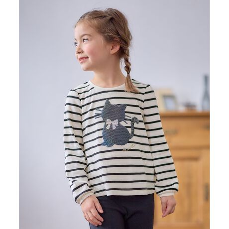 キッズ/長袖/Tシャツ/スパンコール/チョコレート/ネコ/ハート/通園/通学/人気/デイリー/女の子/ガール/サスティナブル商品/コスパ高/トレンド