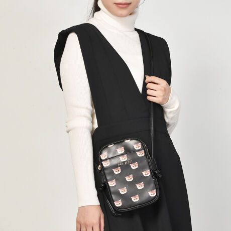 小さなサイズ感のショルダーバッグの前面・背面にはフリーポケットを備え、スマートフォンの収納に便利な仕様に。