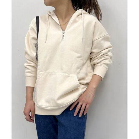 ハーフジップにすることで定番のスウェットも一気に今年顔に。