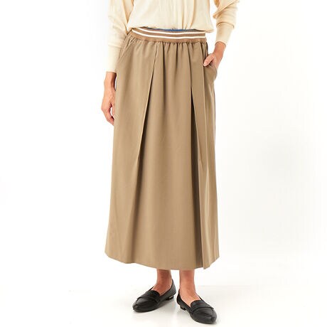 ウエストに大きなタックを取り裾に向かってキレイなドレープをつくったAラインのシルエットスカート。