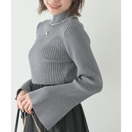 ベルスリーブボトルネックニットプルオーバー