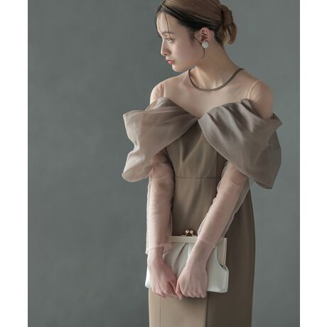 birei ビレイ マットな素材とオーガンジー素材を組み合わせたパーティーシーンにぴったりなドレス。