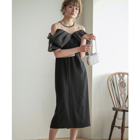 birei ビレイ マットな素材とオーガンジー素材を組み合わせたパーティーシーンにぴったりなドレス。
