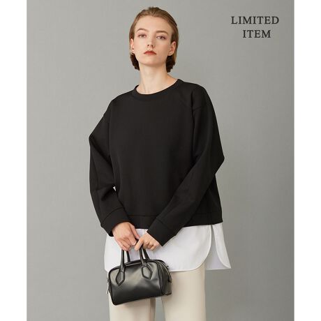 ■デザイン袖にゆとりをもたせ、身巾はゆったりとしたシルエットのシャツコンビプルオーバーです。短め丈からシャツをレイヤードした様なデザインで、カフスディテールにも凝った袖口がポイントです。デザイン性がありながらも、着心地の軽さと身体のラインを拾わないスタイリッシュに見えるシルエットが特徴のおすすめの一枚です。同シリーズのスカートとセットアップで着用すると、大人っぽいスタイリングに仕上がります。