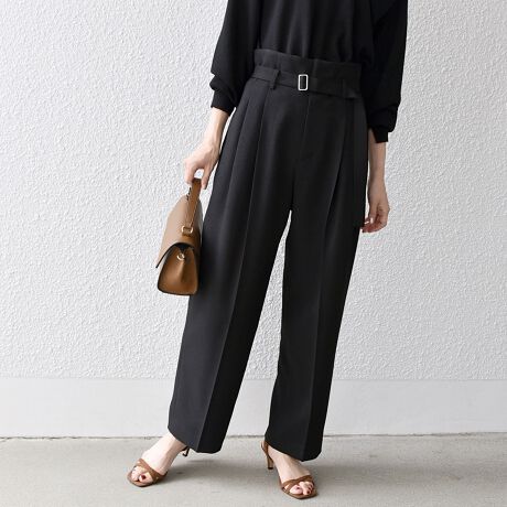 ハイウエスト&センタープレスがスタイルUPを叶えてくれるワイドパンツ。