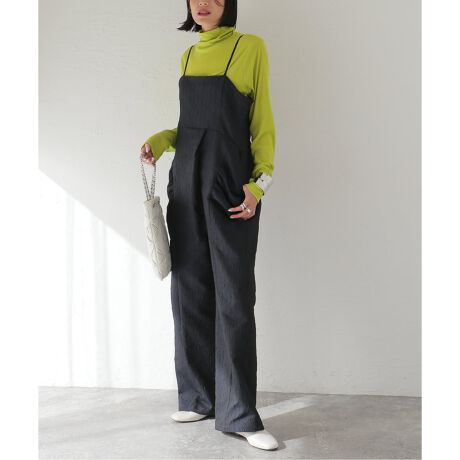 ぽこぽこした表面感のふくれジャカート素材を使用したサロペット。