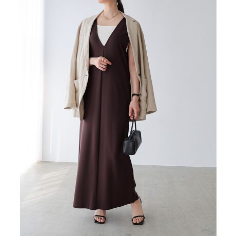 Vネック ポンチ ワンピース ストレート evernavy エバーネイビー