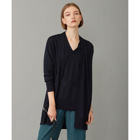 ■デザイン万能に使えるレングスと上品見えする着流しのデザインが特徴のカーディガン。綺麗に着ていただけるよう縦長のすっきりシルエットに仕上げました。さらっと薄手ながら程よい肉感も感じられるので、肌寒い時期の羽織りとしてはもちろん、コートインまで長い期間着ていただけます。キレイ目にもカジュアルにも、最大限の着回し力を楽しめる渾身の一枚です。