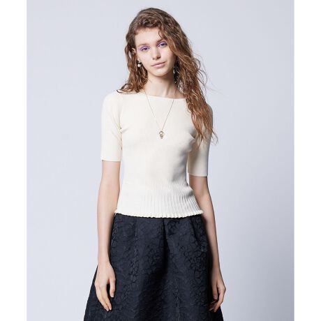 ストレッチ性ある素材を更にリブ編みにすることで、着心地良いストレッチ感と、品の良い可愛らしさがあるニットプルオーバーです。