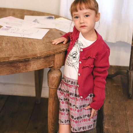BeBeのロゴを幾何学柄調にデザインした、グラフィカルなジャカード生地がおしゃれな女の子用ショートパンツ。