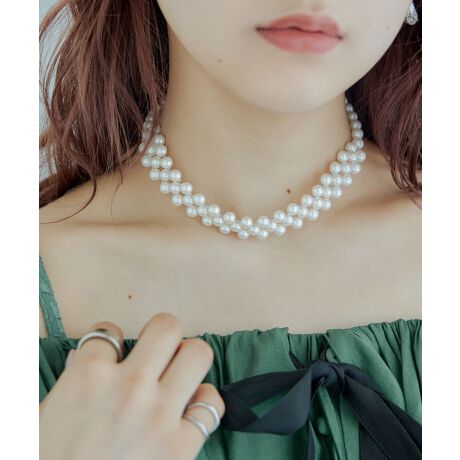 niana ニアナ 首元に綺麗に沿うパールの編み込みチョーカーネックレス。