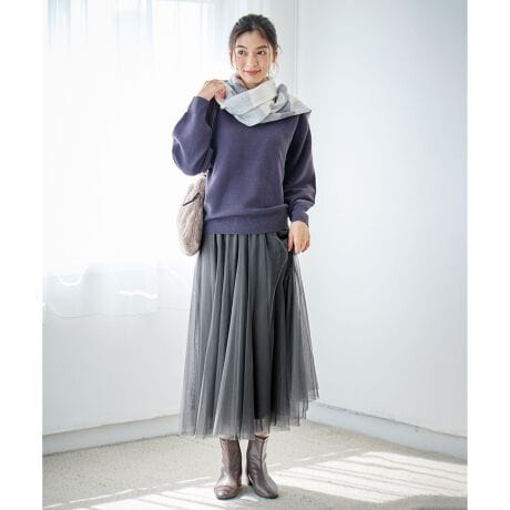 細部までこだわったシルエットで着ぶくれしない!ふわっと軽いチュールスカート