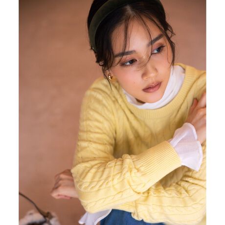 ■デザイン軽く、程よいシアー感がさりげない抜け感を与えてくれるタートルネックのトップス。レイヤードアイテムとしてスタイリングを楽しんでいただける万能インナーです。コットン高混率の着心地のよさ、程よいストレッチ性が特徴で、縦に流れるリブ見え組織が全体的にすっきりと見せてくれます。袖口は楊柳風の細かなプリーツ加工をしたシフォン素材を使用したスリット入りのフレアースリーブデザイン。ふんわり広がる袖口シルエットはレイヤード時の袖口から見せる事でスタイリングのポイントに。ヘムラインはテールが付いている為ウエストインしてしゃがんだり、座った際にもウエストから出にくいシルエットにしています。シャツやニットアイテムのインナーとしてスタイリングのつなぎのアイテムとして楽しんでいただけるレイヤードアイテムです。