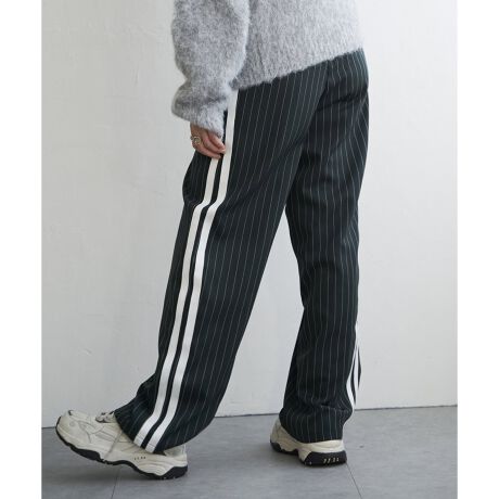落ち着いたカラーを採用したピンストライプ柄に、サイドラインのハズシが効いたデザイン。