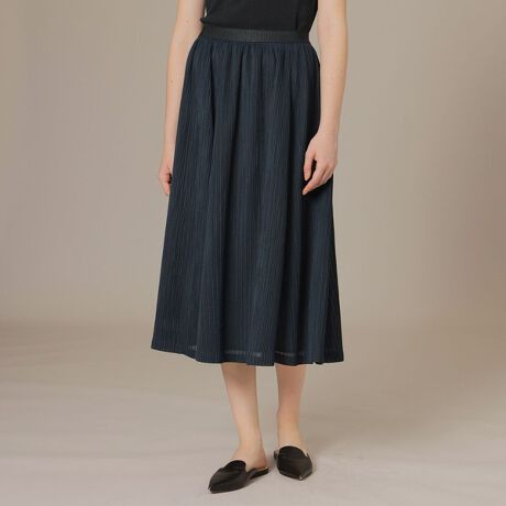 ウエストゴムのイージーな穿き心地にふんわりとしたフォルムでリラックスムード漂うスカートです。ギャザーとフレアを入れてほど良いボリューム感を出しながらもエアリーな表情があり、大人のカジュアルスタイルにぴったりのアイテムです。裏地付きです。