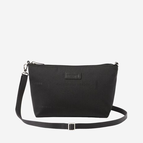 ダンディマンロゴの入ったジャカードのミニショルダーバッグです。ファスナー開閉式なので安心感があり、携帯電話や長財布も入るサイズです。内側には両面にしきり付ポケットが付いておりカードや小物が入れられます。ストラップを長くすれば斜め掛けでき、短くすればセミショルダーのように小脇にかかえられ、取り外せばポーチとしてもご利用可能です。シンプルなデザインで軽量なので、デイリー使いにもご旅行にも便利にお使いいただけます。職人によって丁寧に作られたMADE IN JAPANのバッグです。